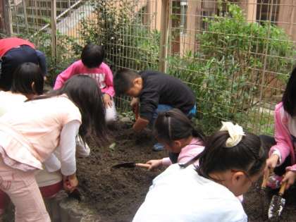 「来年の春にモンシロチョウに卵を産んでもらうためのキャベツの苗を植えています。」