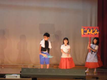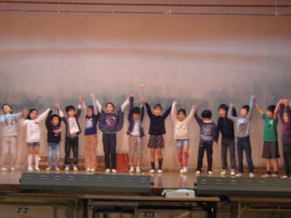 役割を演じ分けながら,常にたくさんの子どもたちが舞台に出て顔をそろえている演出がなかなか素晴らしいです。