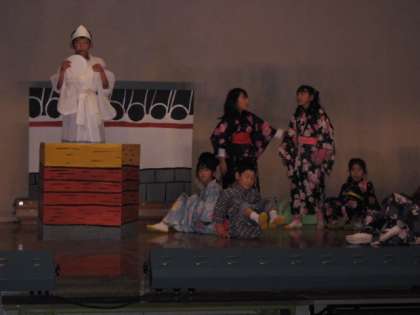 お菊さんが井戸から登場し,お皿の数を数えていきます。