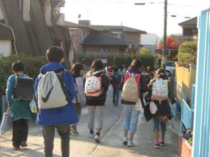 5校時,終了のチャイムが鳴った後,帰りの会を済ませた子どもたちが三々五々,おうちへと帰っていきます。