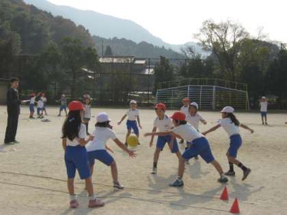 3年生は,穏やかに晴れ渡った運動場で,「エンドボール」のゲームを楽しんでいました。作戦タイムには円陣を組んでガッツを表現するなど,チームワーク良く,ゲームを進めていました。