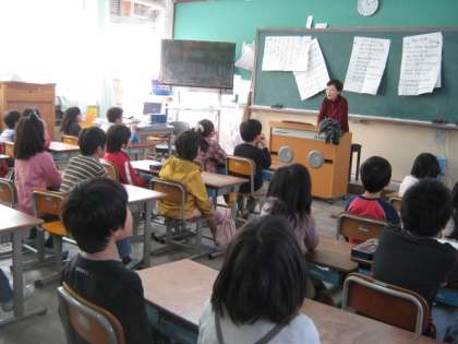 2年生の教室では,学習発表会でお世話になった,教育ボランティアの先生が来てだくださっていて,みんなで楽しく『クリスマスの歌』を歌っていました。みんなの顔が笑っています。