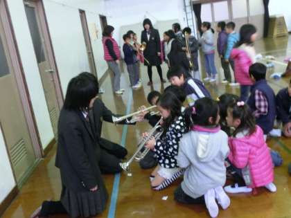 後半は3年生以上の学年が楽器に触らせてもらう「楽器体験」をさせていただきました。大事な楽器に触らせてもらったり,演奏させてもらったりして,子どもたちは大満足でした。