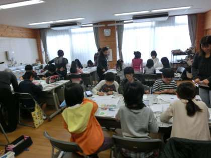 最後に指導者の菅野さんによる講評を受け,自分の描いた絵手紙作品を持ち帰りました。