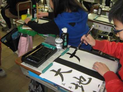 集中して画仙紙に向かっていました。伸びやな筆使いで,ダイナミックな文字が書かれていきます。作品展に展示されるのが楽しみです。