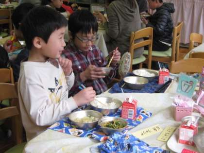 明るい3月の日差しが溢れるランチルームには,そのお日さまに負けないような明るい笑顔がいっぱい広がっていました。