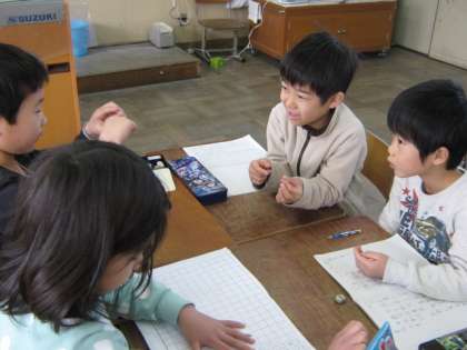 2年生は国語の学習で,話し合いの進め方について教えてもらっていました。司会役,記録者,意見を伝える人と,役割を分担して班ごとに上手に話し合いを進めていました。お友達の意見に丁寧に耳を傾けていました。