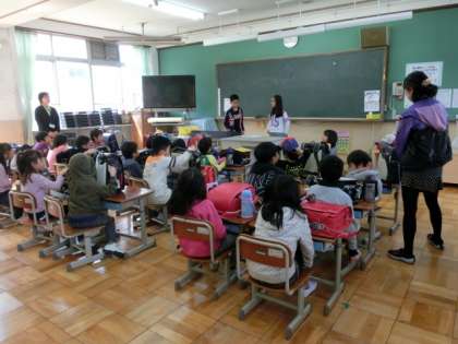 今日の4時間目,町ごとに,決められた教室に集まり本年第1回目の町別児童会を開きました。