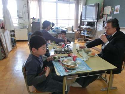 あすなろ学級でも,大きなテーブルを囲んで5名で仲良く給食を頂いていました。