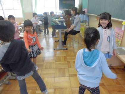 5時間目の音楽の時間の後半に,『貨物列車』の歌遊びをしました。