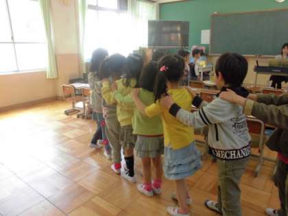 どんどん列車が長くなって,最後は全員の列車がつながりました。