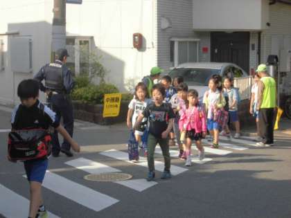 また,今朝は,交差点で醍醐交番の警察官の方も,子どもたちの登校を見守ってくださっていました。