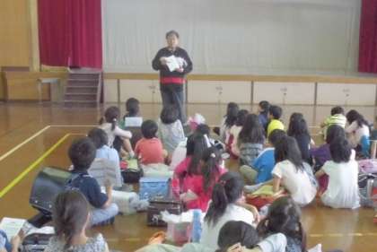 先日の「開室式」の際は参加者が少なかったので,今日の放課後に参加を申し込んでいる子どもたち全員を体育館に集めて,ルールやマナー等について徹底するための話をしました。