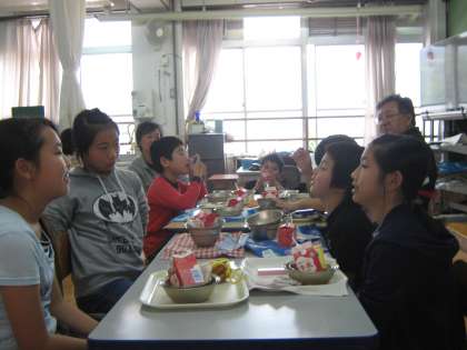 今日から,あすなろ学級と6年生の交流給食が始まりました。あすなろ学級の児童と6年生の1班ずつがあすなろの教室で一緒に食べます。「好きな食べ物は?」とか「好きな時間は?」などサイコロトークをしながら楽しく食べていました。