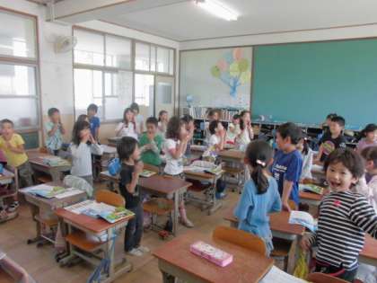 2年生は,交換授業で5年生の担任と一緒に音楽の学習をしていました。