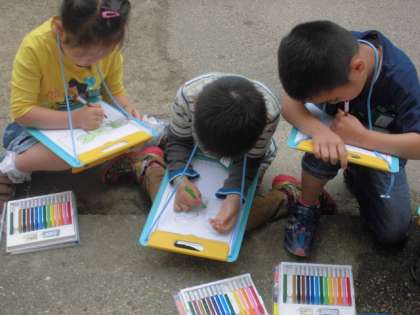 しっかり見つめて,とても正しくその姿を絵で表しています。校長室に戻って,その真剣な態度をカメラにおさめました。