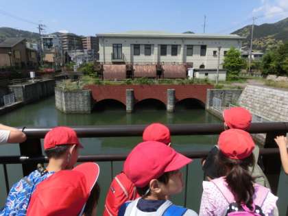 電車で,琵琶湖まで行き,取水口を見学しました。