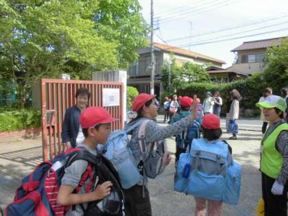 式を終え,たくさんの方のお見送りの中,元気いっぱい「花背山の家」に向かいました。