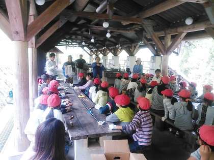 みんなで作った竹ばしでこれから野外炊事で作るすき焼き風煮をいただきます。