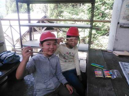 竹ばし作りは、竹を小刀でけずるのに少し苦労したようですが、けずった竹を紙ヤスリで磨いて仕上げました。