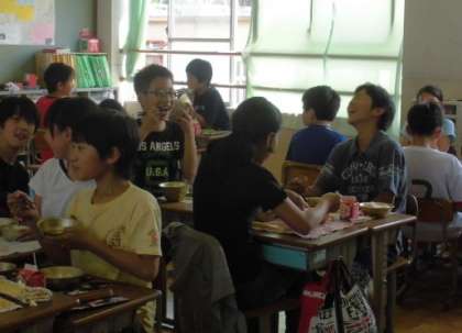 給食も仲よく楽しげに食べています。たくさんおかわりをしてもちろん残菜はゼロです。