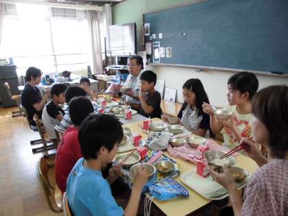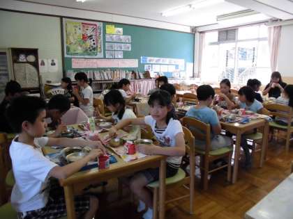 また、ランチルームでは、5年1組が食べていました。