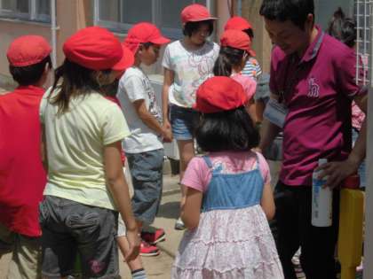 「簡単やったぁ〜。」とテストを終えた後,中庭に出てゴーヤやへちまに液体肥料をあげました。ぐんぐん育ってほしいですね。