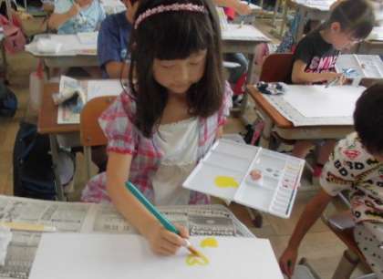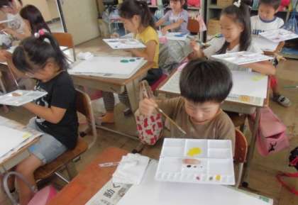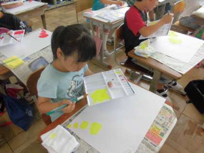 初めて絵の具セットを使った学習です。