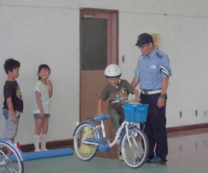 始めに山科警察署の署員の方より,自転車に乗るときの注意についてお話を聞きました。