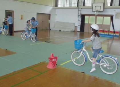 教えてもらったことに気を付けて,一人ずつ実際に自転車に乗って練習しました。
