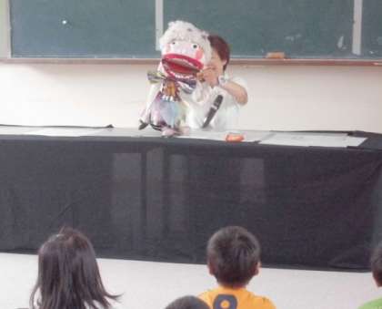 歯科衛生士の先生のマジックや,途中にはバイキンマンも登場する人形劇に子どもたちは大喜び。そのパフォーマンス力で子どもたちはグイグイと引きつけられ,『歯を大切にしなければならない』ということが実感できたようです。
