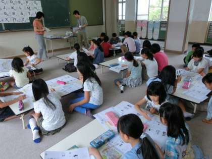 11:00〜12:00には英語学びタイムが実施されました。漢字学びタイムから引き続き参加する子がほとんどで,78名が参加しました。