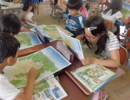 3年生は,「自分が出かけたことのある京都市内の名所・旧跡」について一人一人が発表し,その場所を京都市の地図を広げて,みんなで探していました。地図を食い入るように見つめて探しています。