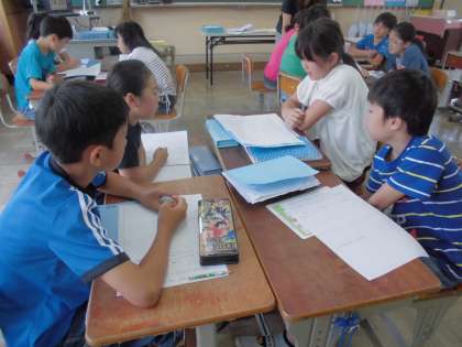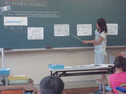 2時間目は算数でした。「少数で割る計算の仕方を考えよう」という学習課題の下,自分はどのような方法で計算したのか,自分の言葉で説明できるよう一生懸命考え,発表していました。