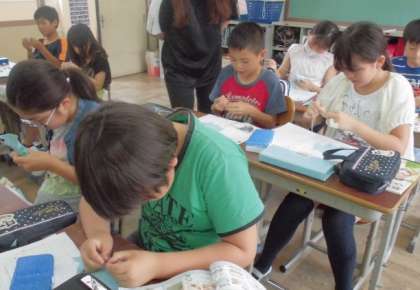 5時間目は,5年生の2名の担任間で授業を交換し,1組の担任と一緒に家庭科の学習をしました。今日教えてもらったのは『半返し縫い』です。みんな,まっすぐにとても上手に縫えていたのに感心しました。