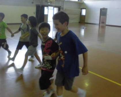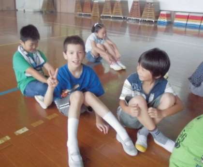 すっかり打ち解けて仲良くなったお友達と,最後の遊びを楽しみました。