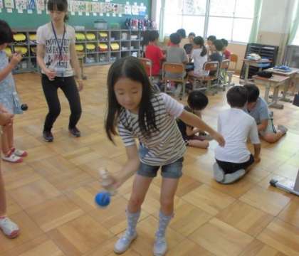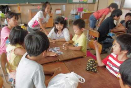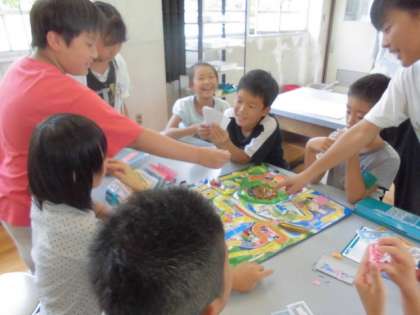1年生から6年生までが,まじりあって仲よく楽しく遊んでいる「心嬉しい風景」です。