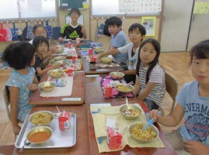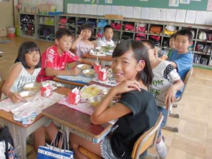 楽しく遊んだあと,そのまま,一緒に給食を食べました。