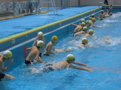 5・6年生は,水泳学習をしていました。久しぶりに太陽の光がまぶしい水泳日和です。「よし,しっかり練習して,泳力を伸ばそう!」という意気込みが伝わってきました。