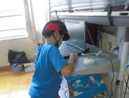 2組の児童も,コンピュータとディスプレーを扱って,DVDを見ようとしているところでした。