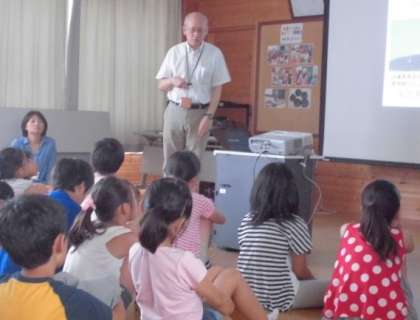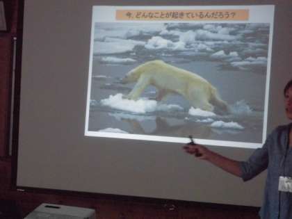 地球温暖化でどんなことが起こっているのか,また,このままでは地球はどうなるのか,それを防ぐためにはどうすればいいかということなどについて,スライドを使って,とてもわかりやすく教えてもらいました。