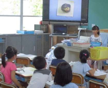 今日は拡大してテレビに映し出して,その作品発表会をしていました。何を描いたか,どこを工夫したかしっかり発表していました。