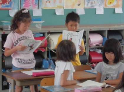 2年生は,国語の「きいろい バケツ」のお話を順番に音読していました。この教材も学習を重ねてきたので,とても上手に読めています。