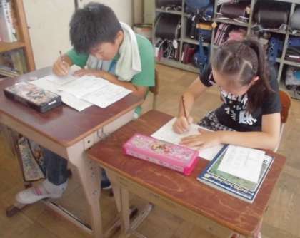 3年生も国語の学習をしていました。手紙の書き方の様式を学ぶ学習で,今日は実際に,転校していったお友達に出すはがきをみんなで書いていました。みんなから届いたはがきはきっと喜んでもらえることでしょう。