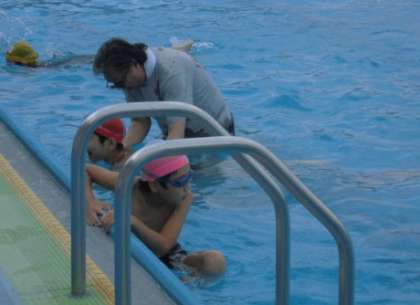 4年生以上で,泳力が25メートル未満の児童を対象にした『メダカ教室』です。