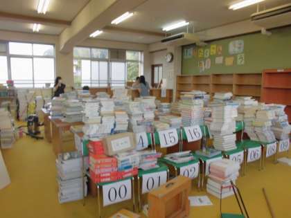 今日の午後は,教職員総出で,書架からいったんすべての本を取り出した後,書架の大移動を行いました。
