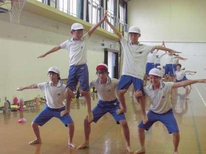 休憩時間に,5年生が大きな技を組み立てる自主練習をしている時には,傍で6年生が丁寧にサポートしている様子も見られ,頼もしい限りです。