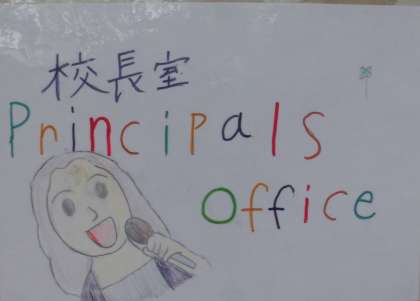 また,Enjoy Englishの取組の一つとして,特別教室などには,スクールサポーターと高学年児童が作った,英語で示された絵カードが掲示されています。