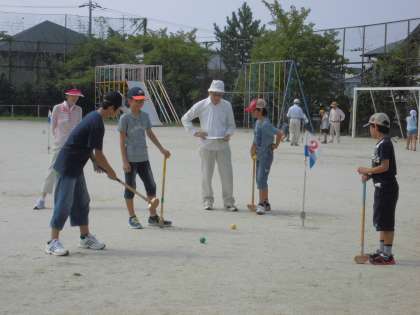 この活動は,毎回,体育振興会グラウンドゴルフクラブの皆様に,ご指導とご支援をいただいて実施しています。