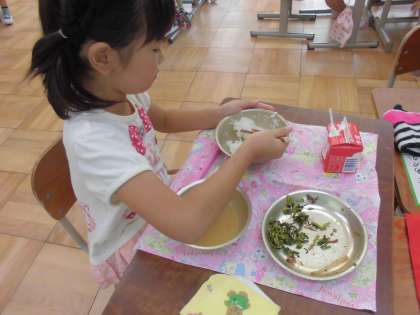 1年生の食べている様子を見に行くと,煮魚も今日で5回目なので,中骨を外して,とても上手に食べているのに感心しました。